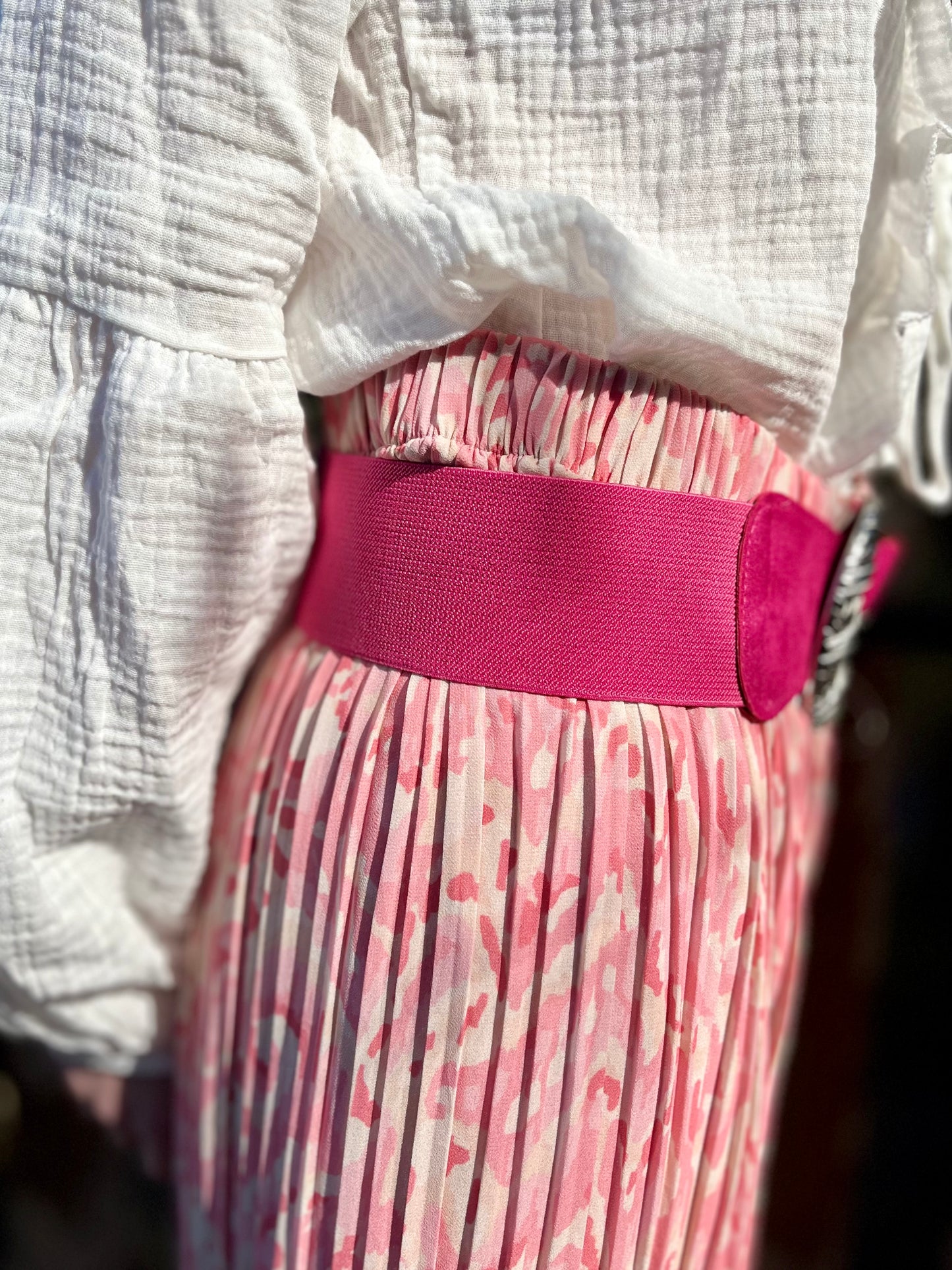 Découvrez notre ceinture boucle argenté, avec un élastique parfait pour s'adapter à votre taille. Disponible en plusieurs coloris, elle complètera parfaitement votre tenue avec nos pantalons fluides de la boutique. Ajoutez une touche de style et de confort à votre garde-robe avec cette ceinture polyvalente.