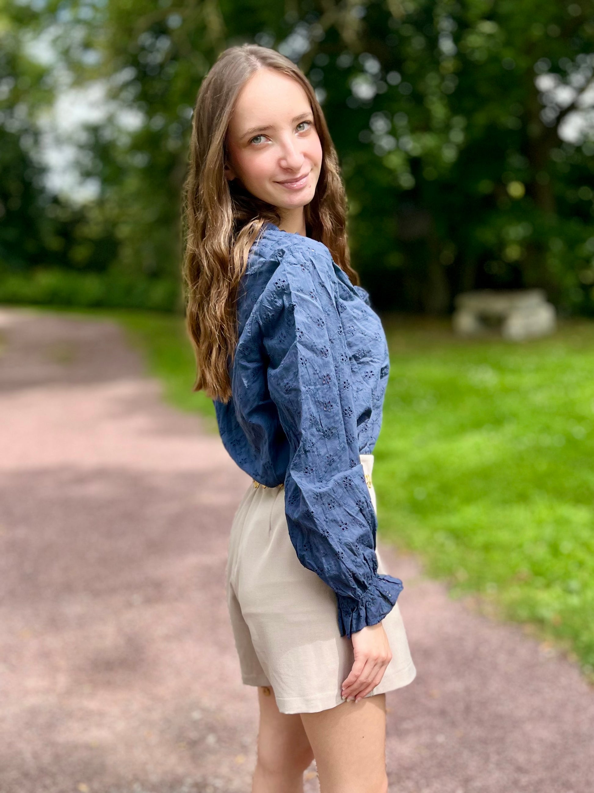Blouse broderie 100% coton - bleu marine