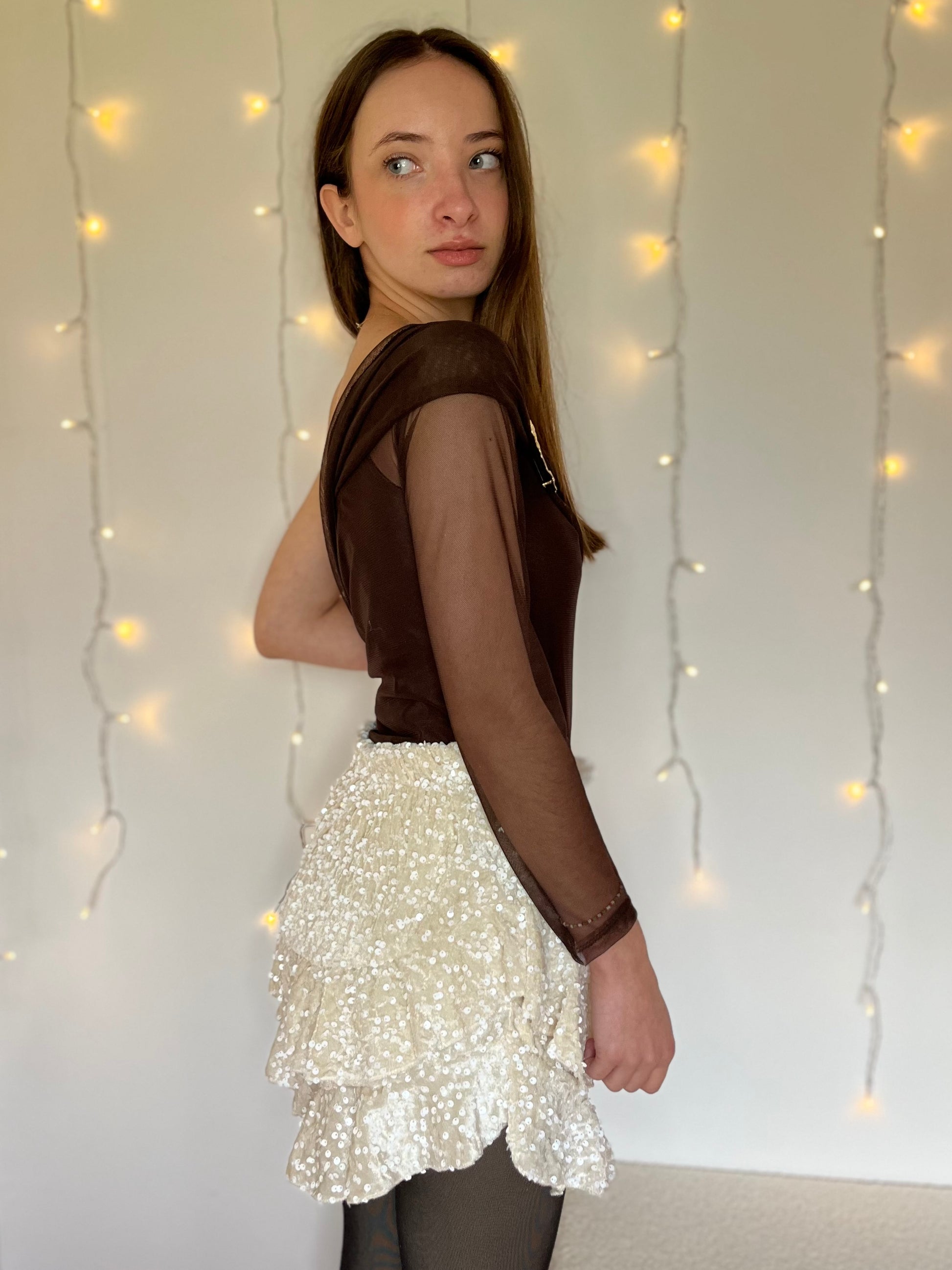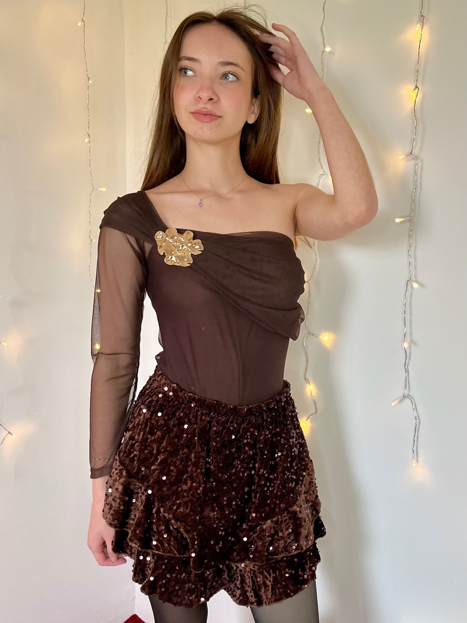 Découvrez notre body en tulles avec sa magnifique broche, pour un style asymétrique idéal pour les fêtes. Profitez de l'élégance de ce body pour sublimer votre tenue et être la plus belle pour les occasions spéciales.