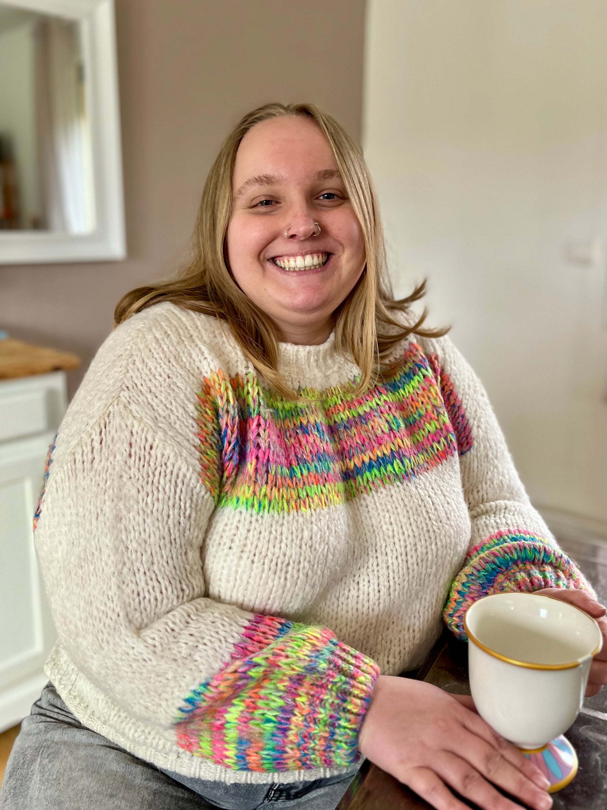 - Couleur: écru et arc-en-ciel